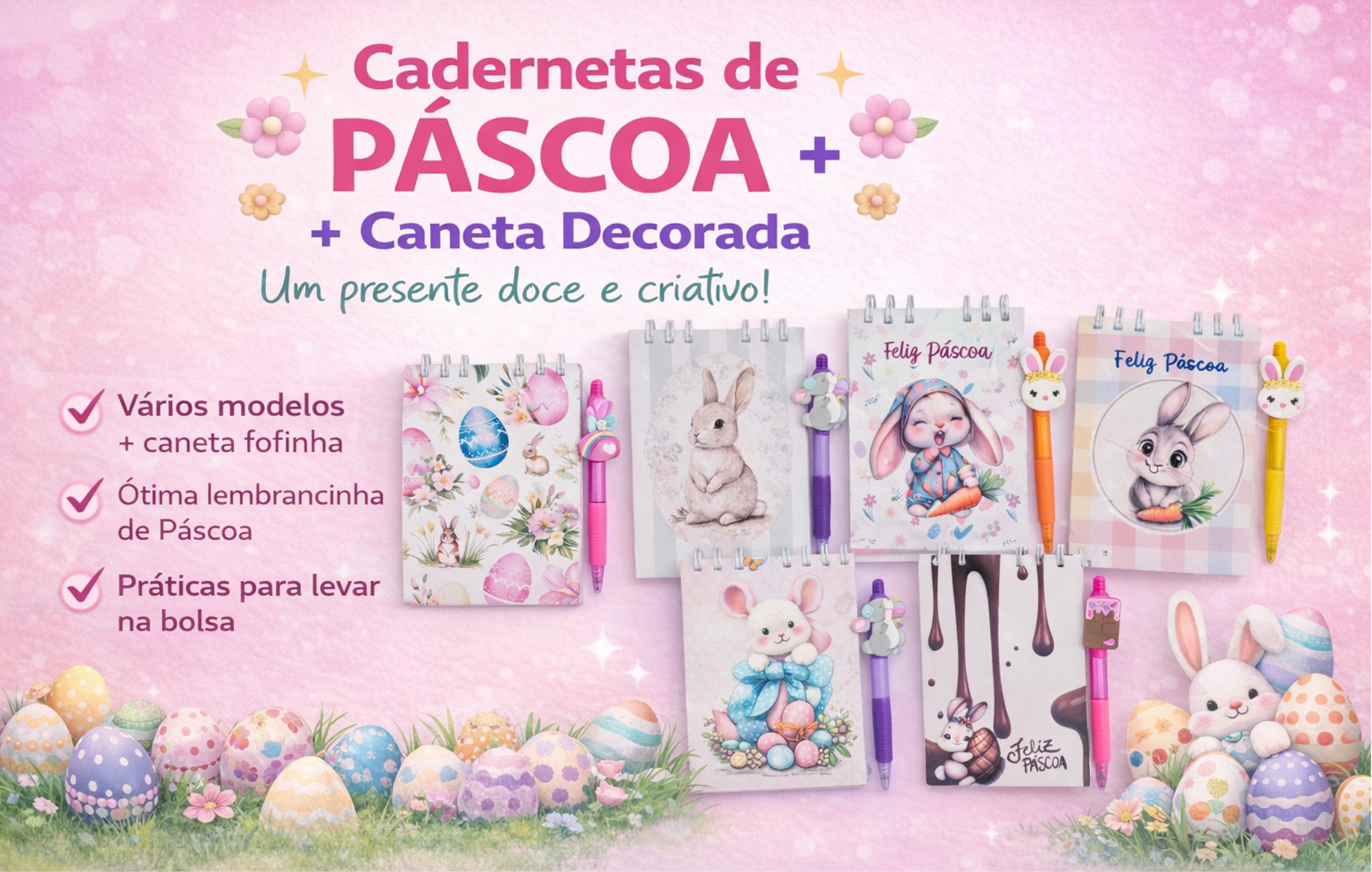 KIT C/10 CADERNETAS DE PÁSCOA C/ CANETA